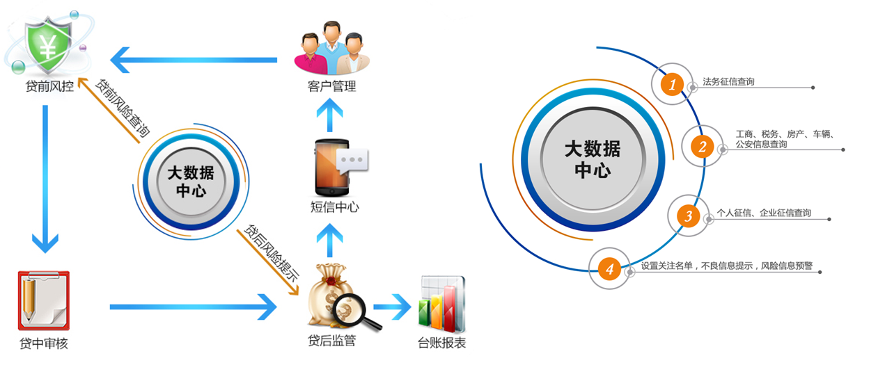 大数据风控已经深入信贷领域,在龙戈新一代担保业务管理软件系统中,实现了大数据风控在担保信贷领域的完美应用。主要体现在以下三个方面: