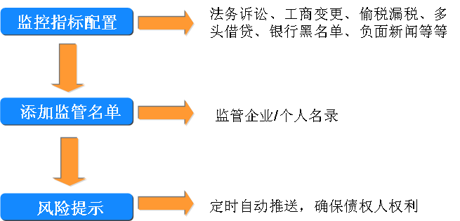 保后监管:实时建立保后风险自动动态监管提醒机制,及时发现异常风险。