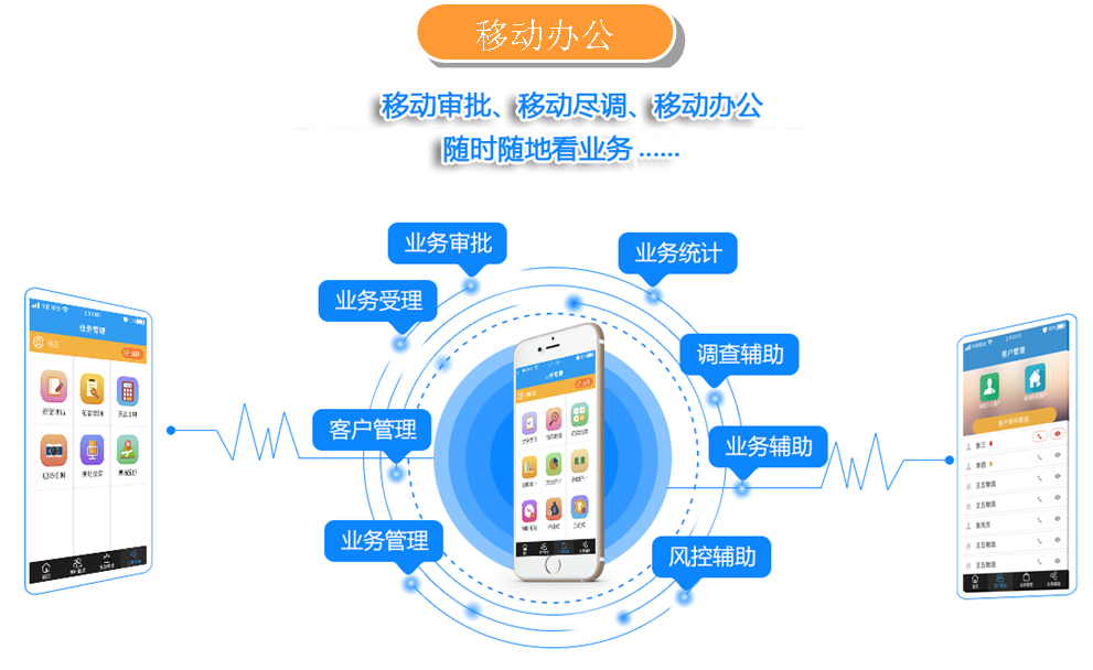 随着互联网及智能手机的普及,大家越来越习惯使用手机来处理生活及工作中的事项,龙戈软件也将互联网移动APP与担保业务系统进行结合,为用户(员工)提供了一套包含进件、审批、消息提醒、进度查看、数据查询、业务辅助等多功能的智能APP,使用户更方便的处理工作事项。
